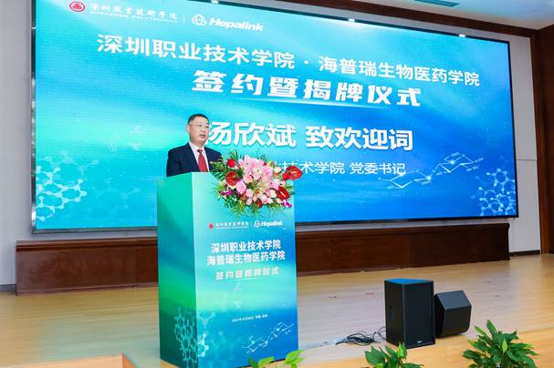 杨欣斌指出,在全球未来产业争夺赛中,生物医药当仁不让地成为了目前最受欢迎、最被热捧的新兴产业之一。生物医药是深圳市七大战略性新兴产业之一,发展前景广阔。创新型生物医药企业所需的医药研发、质量管理、营销等人才呈现常态化的紧缺,2020年生物医药人才缺口25万人,2025年缺口将达45万人。深职院自1997年创办药学专业,取得了丰硕的办学成果。海普瑞生物医药学院的成立一定能够有效集聚双方优势资源,成为国内生物医药领域职业教育校企合作的典范,为粤港澳大湾区生物医药产业发展提供强大的人才与智力支持。
