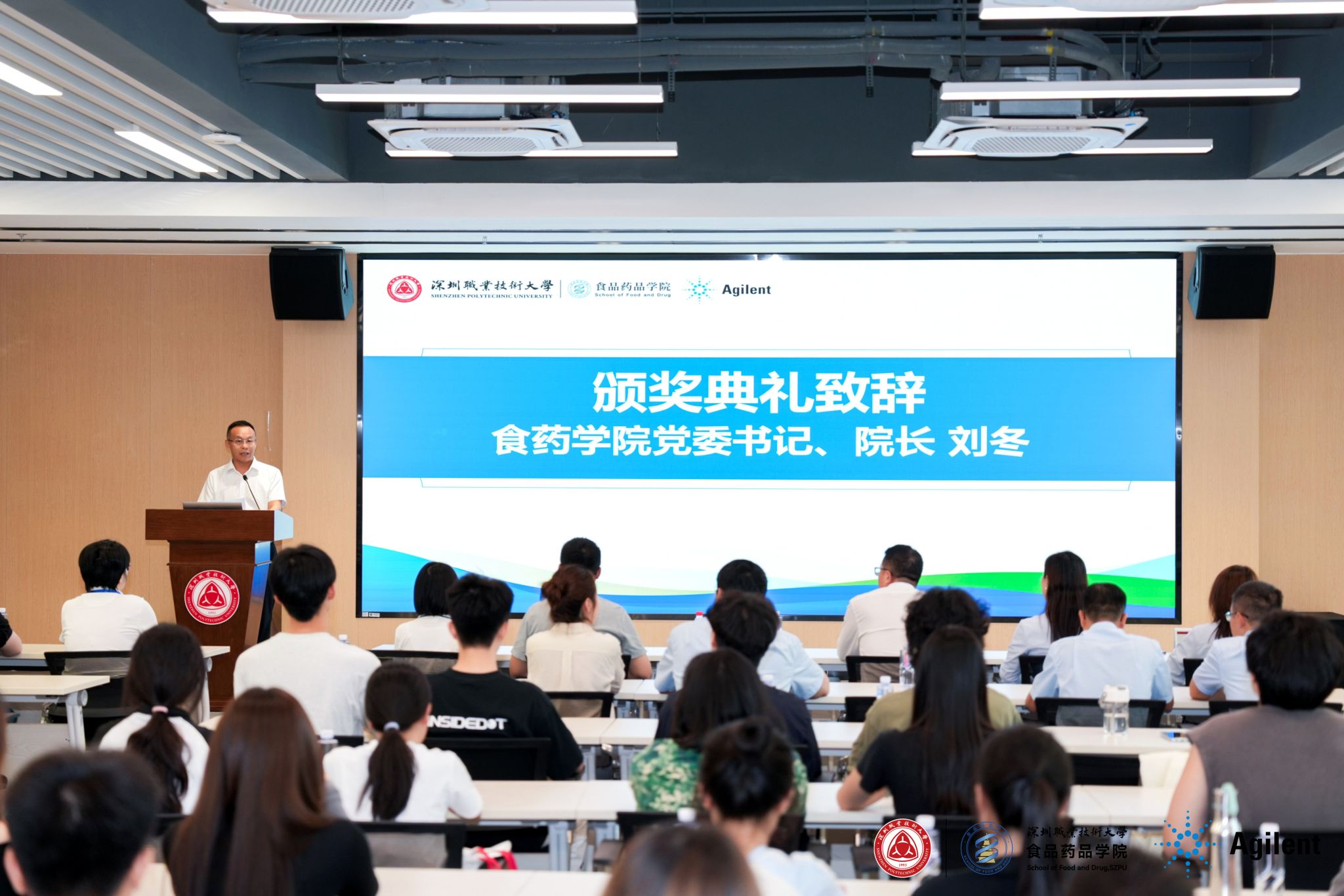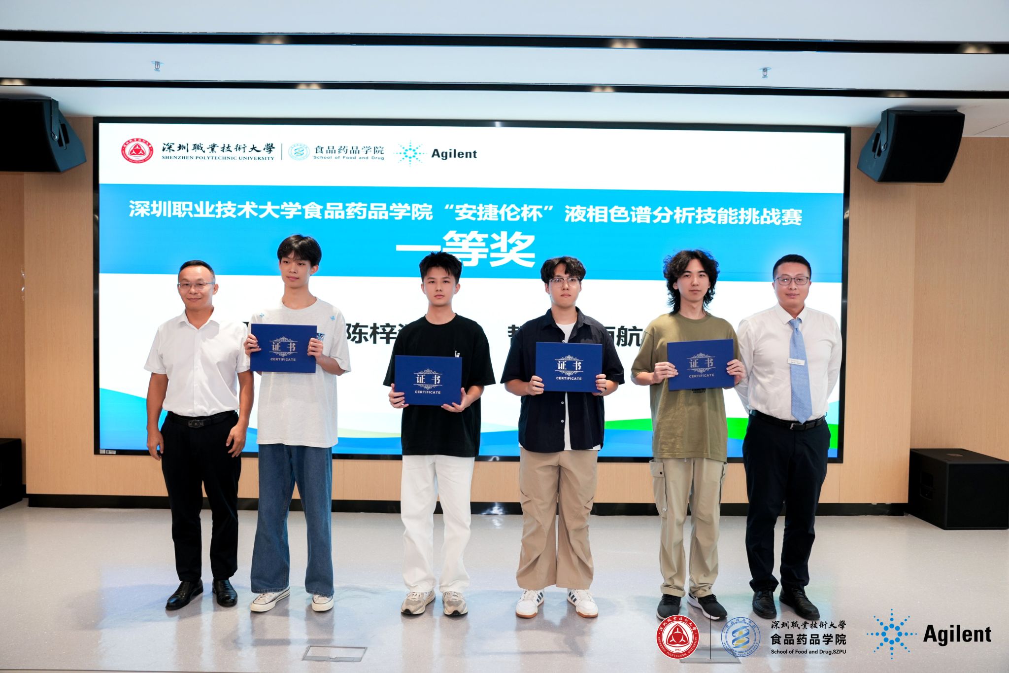 23食安2班谭梓灵、陈梓濠,23药生1班李哲、23食安4班谢雨航斩获大赛一等奖。suncitygroup太阳集团党委书记、院长刘冬,副书记段杰鑫、副院长黄略略,安捷伦南区整机销售业务部广东区高校&制药经理贾旭威、服务解决方案部广东区经理王丹、售后服务产品部市场经理刘田田等嘉宾出席决赛颁奖仪式,共同见证赛事成果。