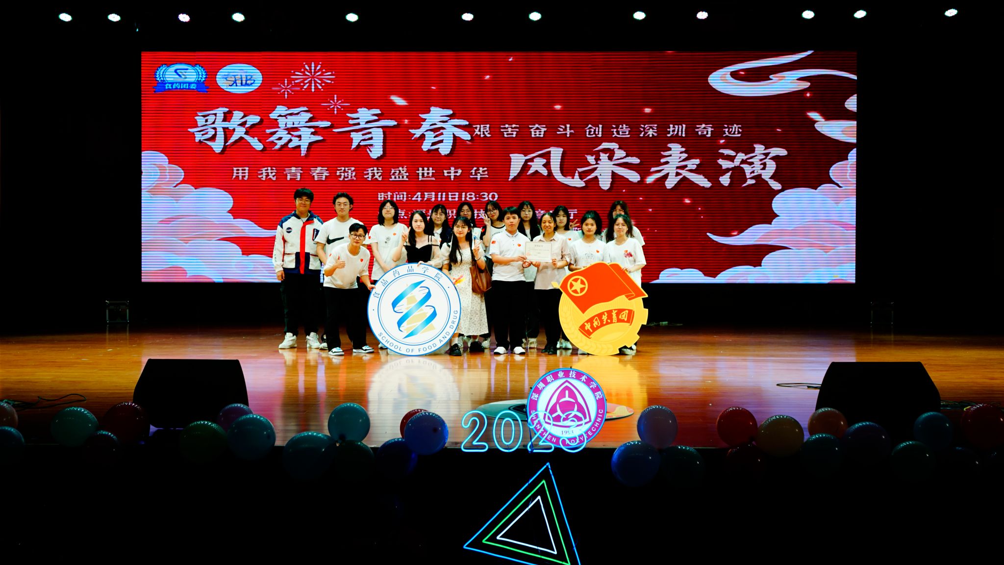 4月11日,为引领广大青年深入学习贯彻党的二十大精神,热烈庆祝建校30周年,激励青年做有理想、敢担当、能吃苦、肯奋斗的新时代好青年,食药学院与商外学院联合决定举办2023年“歌舞青春”团支部风采展演。校团委副书记杜森,商外学院党委副书记沈阳,食药学院党总支副书记段杰鑫,商外学院学工办主任周广,食药学院学工办主任李艳晖,双方学院辅导员、参赛班级班主任及300余名学生出席并观看展演。