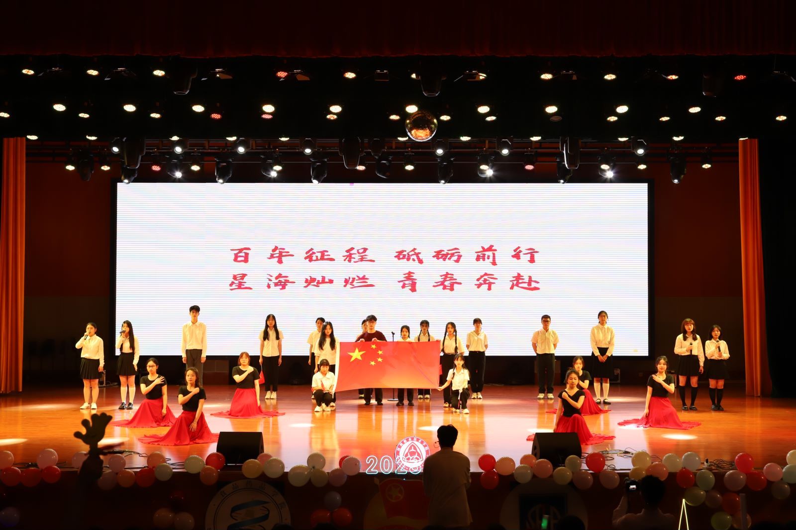 决赛展示环节,来自两个学院的14个班级团支部分别在团支书的带领下紧紧围绕主题,呈现了形式多样、内容丰富、情感真挚的精彩表演。其中,食药学院22食安1班带来舞台剧《放牛娃盼红军》,通过表演中国共产党人解放农民的历史故事,歌颂了中国共产党实现几代中国人梦寐以求的民族独立和人民解放的梦想。22食安2班热情演唱《保卫黄河》,讴歌了中华儿女不屈不挠、保卫祖国的必胜信念。商外学院22应西班级团支部带来的舞台剧《万家灯火》舞美设计精心,生动呈现了革命青年火热的爱国情怀和顽强斗争的精神,展现了青年学子对党史国情的深刻理解;22应阿班带来外语歌曲《做自己》,身着阿拉伯服饰,表演活泼热情,生动诠释了现代青年走向国际化舞台的趋势,欢快的节奏燃动现场。其他班级团支部一一上台展演讴歌时代精神和优秀民族精神。本次赛事共决胜出一等奖3名、二等奖5名,三等奖6名,最佳人气奖2名,晚会现场流光溢彩,展演赢得同学们的阵阵喝彩。