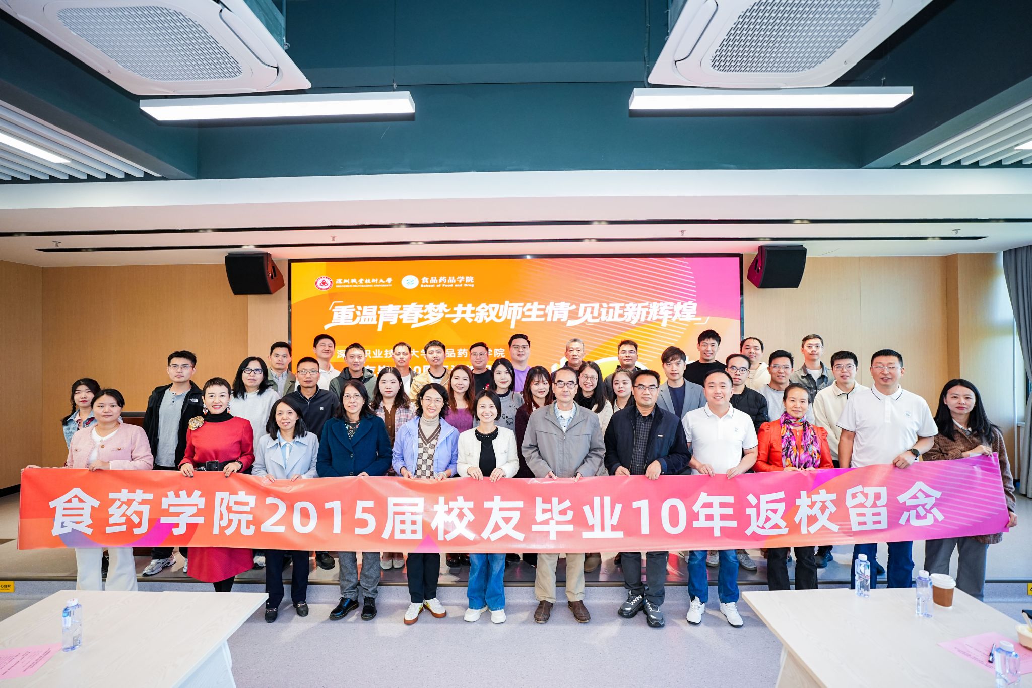 座谈会现场温情洋溢。学院领导、专业负责人、退休教师及班主任与校友共话往昔、展望未来。一位班主任动情说道:“你们从青涩学子成长为行业栋梁,是我最珍贵的记忆。”老教师们则以幽默话语重温往事,轻松氛围中满载骄傲与期许。校友代表分享毕业后的奋斗故事。一位15届校友感慨:“母校不仅授予知识,更让我遇见相伴一生的爱人。我们铭记校训,共同在行业深耕。”这样的故事引起共鸣,深职大不仅是求学之地,也成为许多人幸福人生的起点。