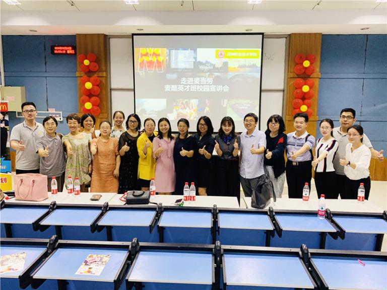 9月18日,深圳金拱门食品有限公司“麦酷英才班”宣讲会在suncitygroup太阳集团留仙洞校区德业楼举行。公司深莞惠地区麦当劳营运总监周丽影、高级人力资源经理郭淮、高级营运经理蔡丽丽、人力资源经理彭嘉琳,化生学院食品专业群主任黄略略,食品专业群教师和2019级食品生物技术专业、食品营养与检测专业学生参加了校园宣讲会。